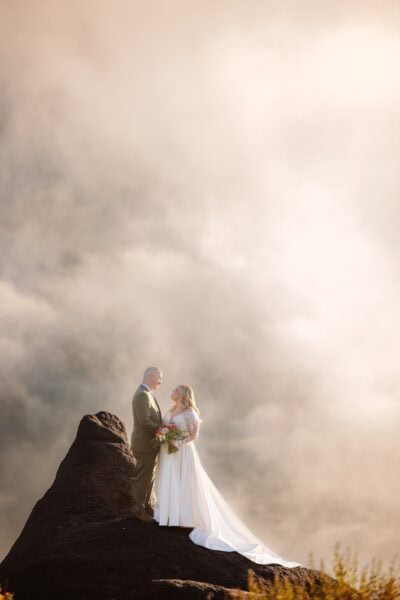 What happened next was not something they could have predicted. Amanda shared that it was already stunning, but as they began reading, clouds rolled in and wrapped around the overlook. She described it as feeling like they were in the clouds of heaven. The sky shifted dramatically during their vows, creating what became their favorite images of the day. Before reading, they played rock, paper, scissors to decide who would go first. Amanda later joked that she regretted winning because she was so moved by what Grant had written. It was, in her words, the most touching and special moment of her life.
