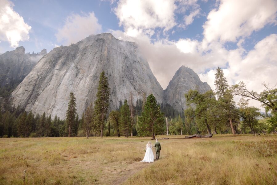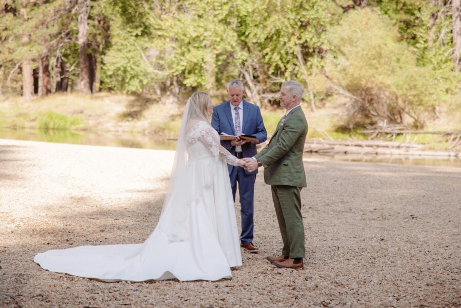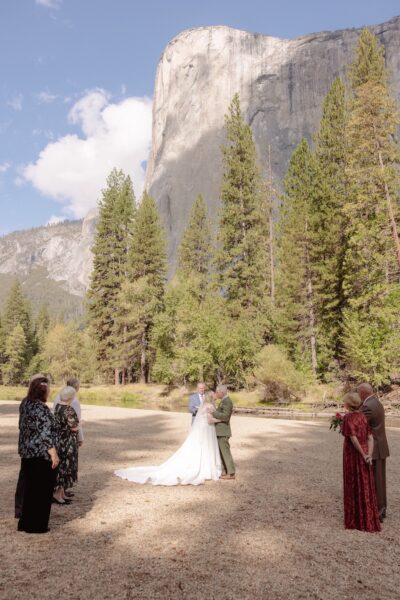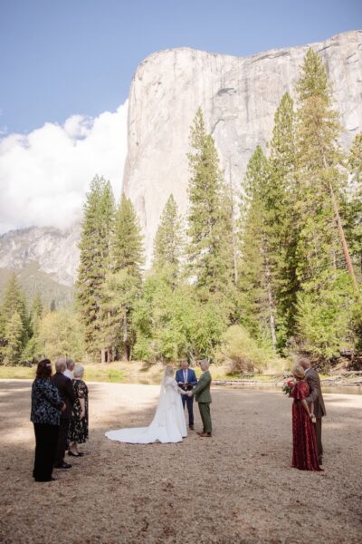 By 10:30 that morning, they gathered at Cathedral Beach with their eight guests. With their permit secured and in hand, they stood near the river with El Capitan rising in the background. The ceremony was intentionally short and meaningful, including a reading, a ring exchange, and a second set of vows that were revised from the private words they had shared at sunrise.