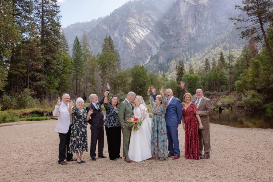 Unlike the quiet isolation of Glacier Point, this part of the day felt communal. Alyssa noted how special it was to watch their families gather in such a beautiful yet understated setting. After the ceremony, they took photos with each set of parents and then all together, creating space for everyone to feel included.